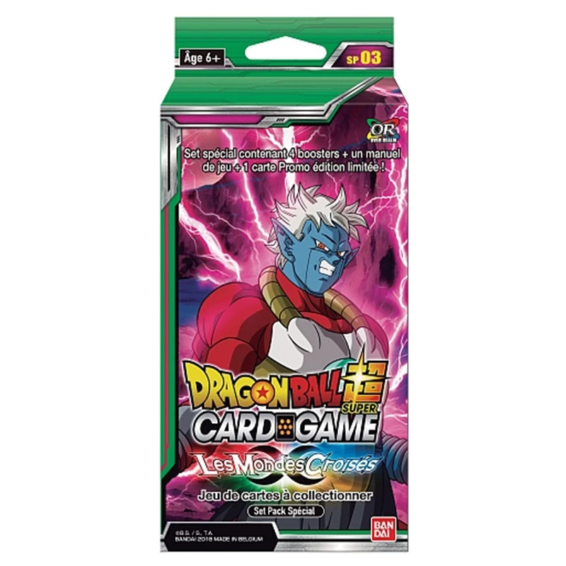 Cartes Dragon Ball Super Set Pack Spécial Les Mondes Croisés. Set spécial contenant 4 boosters, un manuel de jeu et 1 carte promo en édition limitée.
